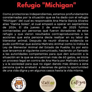 Por este hecho tres agrupaciones (Catogar, La caja del Michi y Cattud) revelaron que ya hay una denuncia por crueldad animal en contra de la influencer.