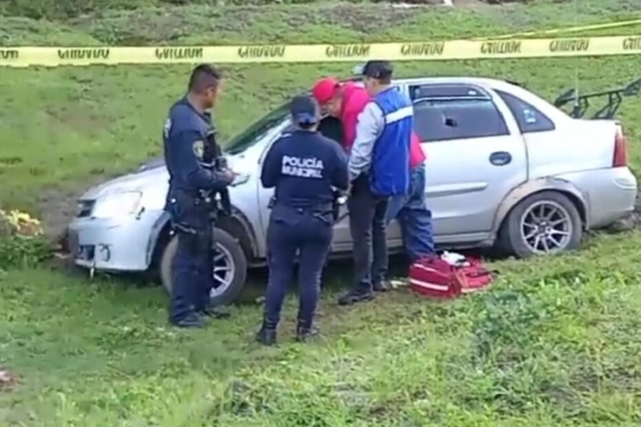 Ambos cuerpos quedaron al interior del vehículo Chevrolet Corsa de color gris que quedó encendido y se salió del camino y terminó estancado en una zanja.