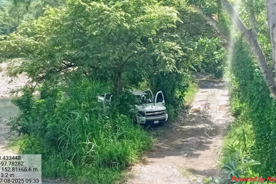 Una camioneta Cheyenne fue abandonada con armas largas y granadas de fragmentación al margen del río San Marcos en la comunidad de Tepetate en Xicotepec de Juárez.